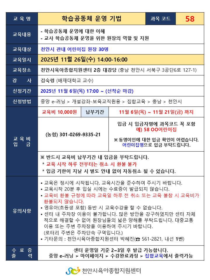 11월 진행 교육은 8명 미만 신청 시 교육이 취소될 수 있음을 안내드립니다.