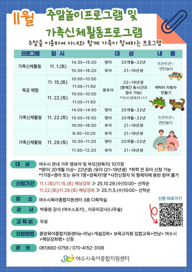 11/29(토) 주말놀이프로그램 -(20개월~22년생)10:30~11:20 영아