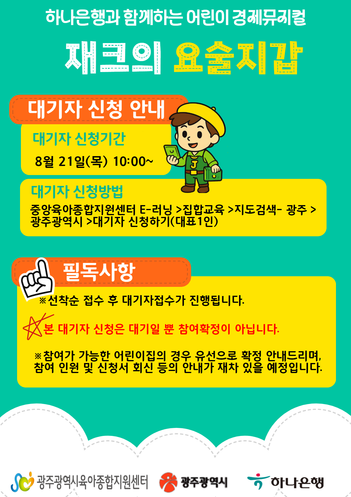 ★대기자(참석가능 시 유선안내)★[9/11(목)] 어린이 경제뮤지컬(10:30~12:00)