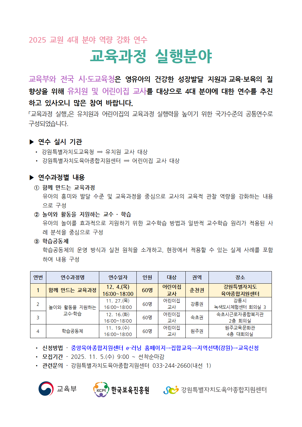 홈 > 개설강좌 > 보육교직원용 >