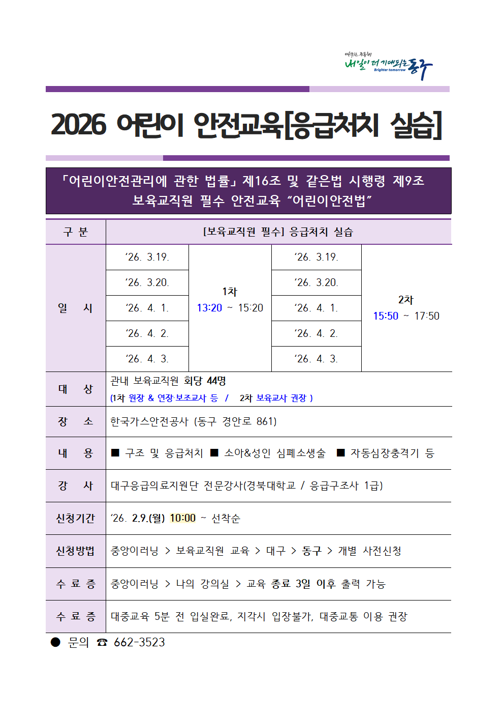 동구육아종합지원센터 (053-662-3521)