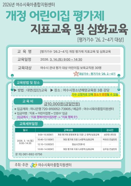 3/14(토) [평가기수 26. 2.~4기]개정 어린이집 평가제 지표교육 및 심화교육
